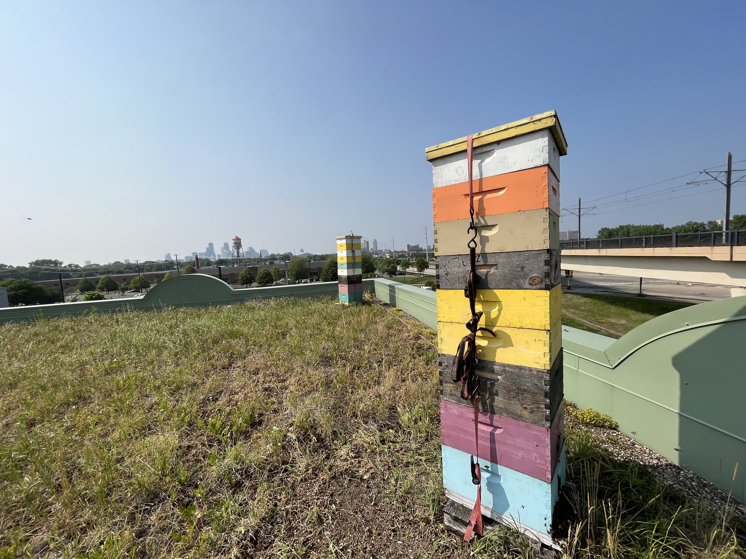 The Beez Kneez partners with Twin Cities restaurants, food co-ops, universities, and green buildings to bring honey bee hives to the city. In 2025, we have 5 such host sites- wonderful, excited, passionate folks with an interest in bees and the connections they bring to education, our food system, the environment. Each host site is unique- and, in having a diversity of partners, we have had the opportunity to co-develop a number of different models for incorporating the hives into the goals of the organizations like creating pollinator friendly landscapes and planning events. We’re so excited to grow these partnerships.